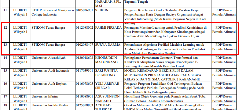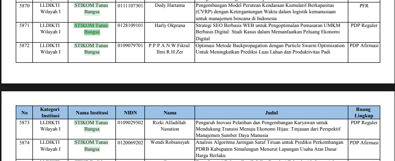 Daftar NUPTK Dosen STIKOM Tunas Bangsa
