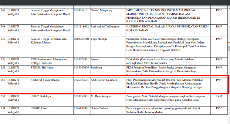 Selamat 5 Dosen STIKOM Tunas Bangsa Penerima Pendanaan Program Penelitian dan Pengabdian kepada Masyarakat Tahun Anggaran 2024
